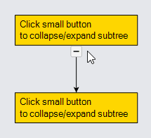 It is common to want to expand and collapse subtrees. It is easy to let the user control this by adding an instance of the "TreeExpanderButton" to your node template. The button calls CommandHandler.CollapseTree or CommandHandler.ExpandTree depending on the value of Node.IsTreeExpanded. The button's icon's Shape.Figure changes as the value of Node.IsTreeExpanded changes.