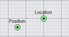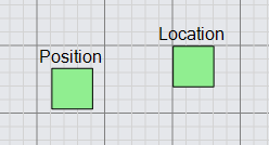 In this example both nodes have the same Y-coordinate value of zero. Note how in the above example the "Position" Node has the top-left corner of the node at the grid point. Yet the "Location" Node has the top-left corner of the green square at the grid point. If you were to edit the text of each node, the green square would move relative to the diagram grid for the "Position" node, but would not move for the "Location" node.