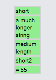 new TextBlock("medium length") { Margin = 2, Background = "lightgreen" },