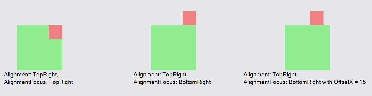 new TextBlock("Alignment: TopRight,\nAlignmentFocus: BottomRight with OffsetX = 15")