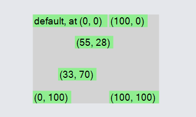 new TextBlock("(100, 0)") { Position = new Point(100, 0), Background = "lightgreen" },