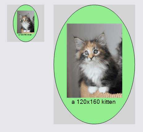 In this diagram there are two copies of the same Auto Panel, each consisting of a Picture and a caption TextBlock surrounded by an Ellipse Shape. The one on the left is inside a Viewbox Panel forced to fit in an 80x80 area; the one on the right is its natural size. Note that you can still see all of the elements of the panel at a reduced scale so that it can fit inside the Viewbox panel. But because the nested panel is taller than it is wider, there is empty space on the sides of the 80x80 Viewbox.