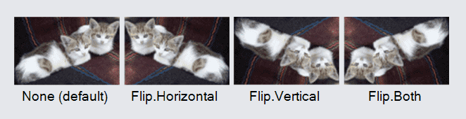 You can flip image sources horizontally and vertically with the Picture.Flip property: