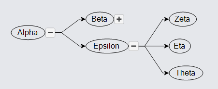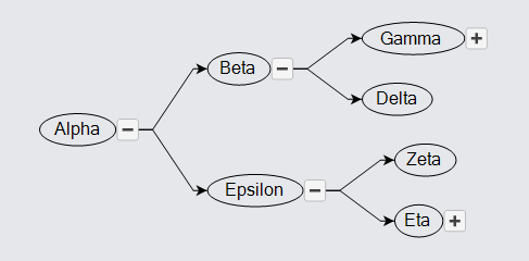 It is commonplace to provide a button on a node to allow users to collapse and expand subtrees as they wish. GoDiagram makes this easy to implement by providing a predefined kind of Panel, named "TreeExpanderButton", that acts as a button to collapse and expand the subtree of a node. This button changes the visibility of all parts of the subtree except for the node itself.