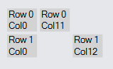 new TextBlock("Row 0\nCol11") // column 11 -- nothing in columns 1-10