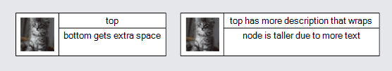 In this example the first column spans two rows, because GraphObject.RowSpan is 2 on the Picture.