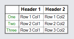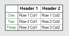 new TextBlock("Three") { Column = 0, Stroke = "green", Margin = 2 },